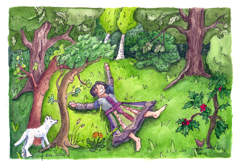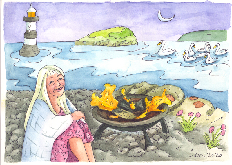 Since 2020 i have started a series of private commissions called Empowering portraits. In an exchange we decide on a theme and location that is giving the person what they would like support with. After the sketch is agreed i work on the illustration in colour. In many cases the picture gets a special place in the house where it inspires daily.